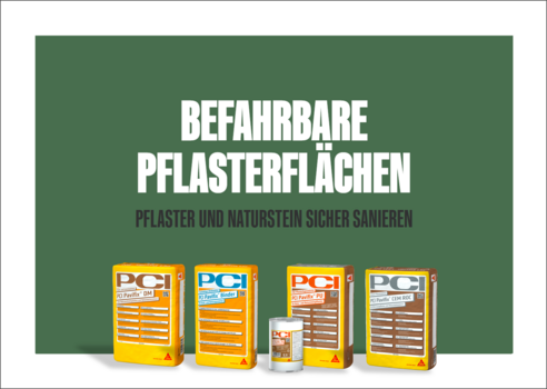Befahrbare Pflasterflächen wie Einfahrten oder Parkplätze sind regelmäßig Belastungen durch Fahrzeuge und Witterung ausgesetzt. Mit der Zeit können Risse oder Absackungen entstehen, die nicht nur die Optik, sondern auch die Sicherheit und Tragfähigkeit beeinträchtigen. Mit optimal aufeinander abgestimmten PCI-Produkten an deiner Seite sanierst du Pflasterflächen sicher und zuverlässig im System.